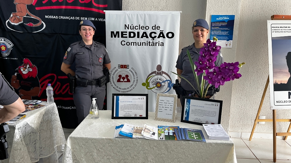 No hall que antecede o auditório foi servido um café da manhã aos presentes e conduzidas homenagens às mulheres com apoio de parceiros. No espaço também foi montada uma área de exposição com materiais operacionais, projetos comunitários desenvolvidos pela Polícia Militar na área do 25º Batalhão, como o Proerd, Escolinha de Ciclismo e Vizinhança Solidária, e ainda apresentados materiais de divulgação do Numec (Núcleo de Mediação Comunitária).