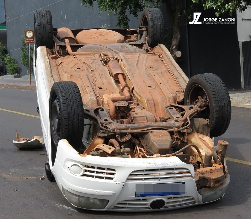 Condutor perde controle da direção e carro capota no centro de Dracena