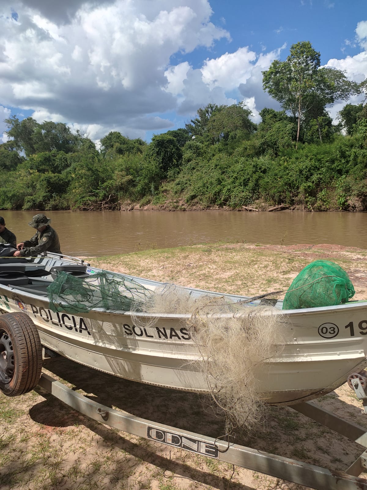 Nesta sexta-feira (5) durante a Operação Piracema, equipes da Polícia Militar Ambiental efetuaram policiamento náutico no Rio Aguapeí em Adamantina com vistas à pesca ilegal, onde foi visualizado um pescador às margens do rio que ao perceber a presença dos policiais se embrenhou no meio do mato.