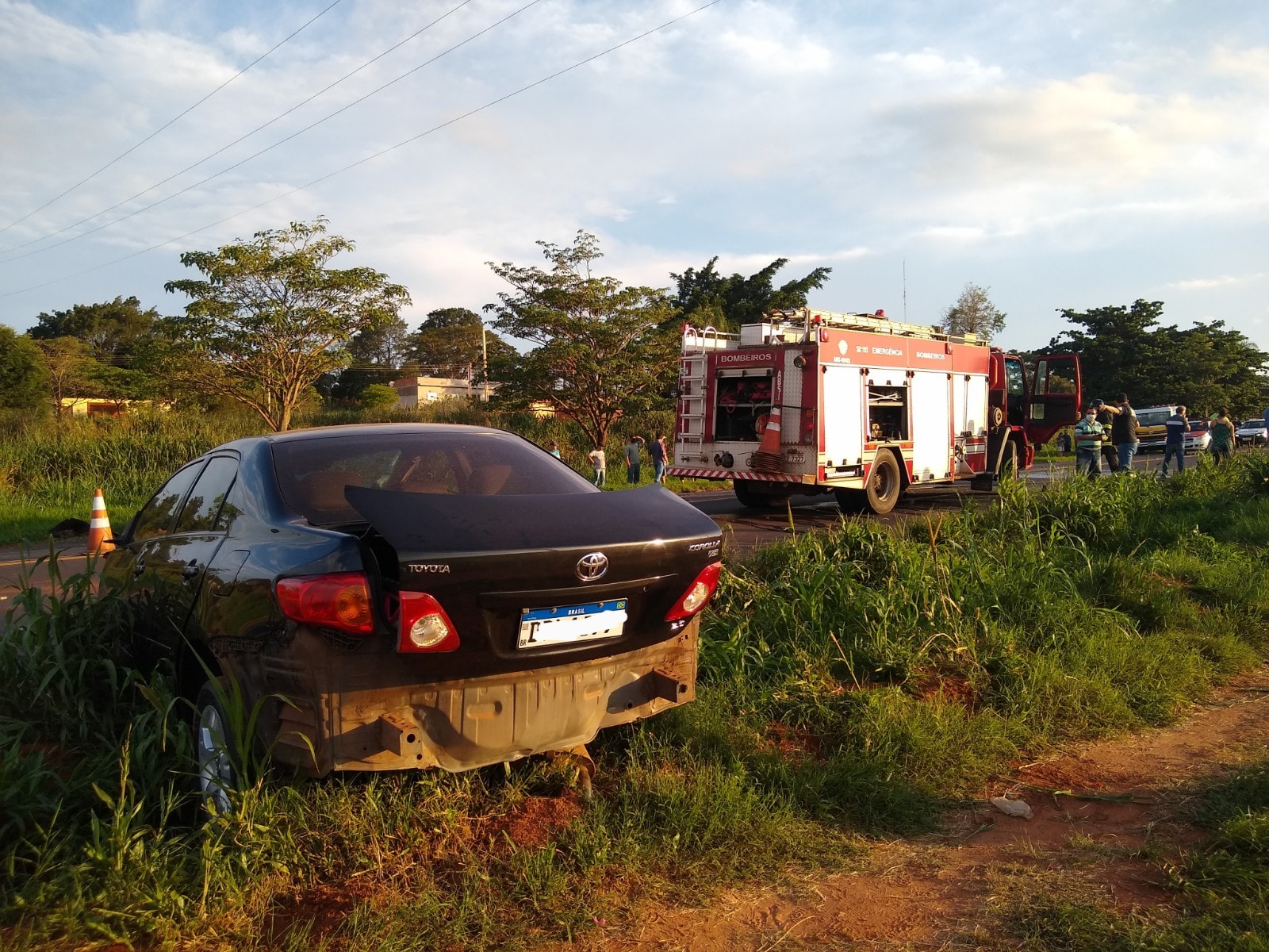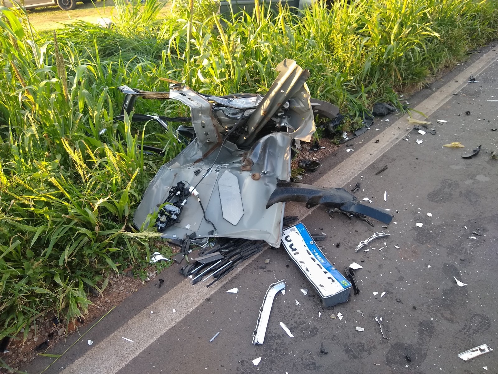 Por motivos ainda a serem esclarecidos, houve a colisão entre os dois veículos. O forte impacto da batida arrancou toda a parte frontal e motor do Corolla, que foram arremessados.