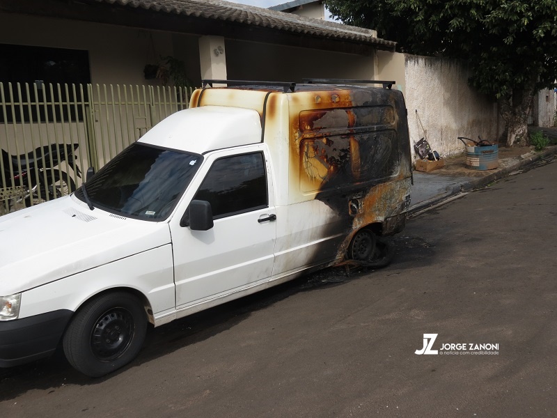 No primeiro caso devem ter jogado um produto, provavelmente gasolina, e no segundo colocaram uma pequena lata também com líquido e estopa próximo do pneu traseiro esquerdo do Fiorino.