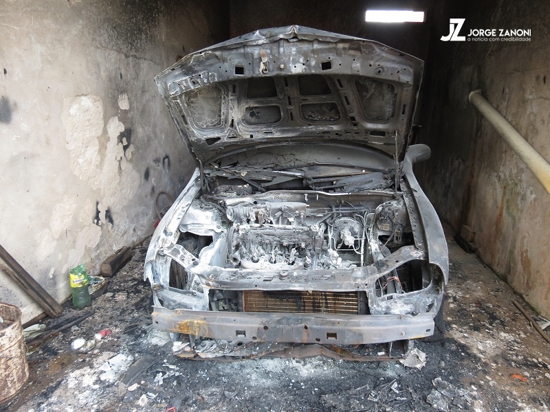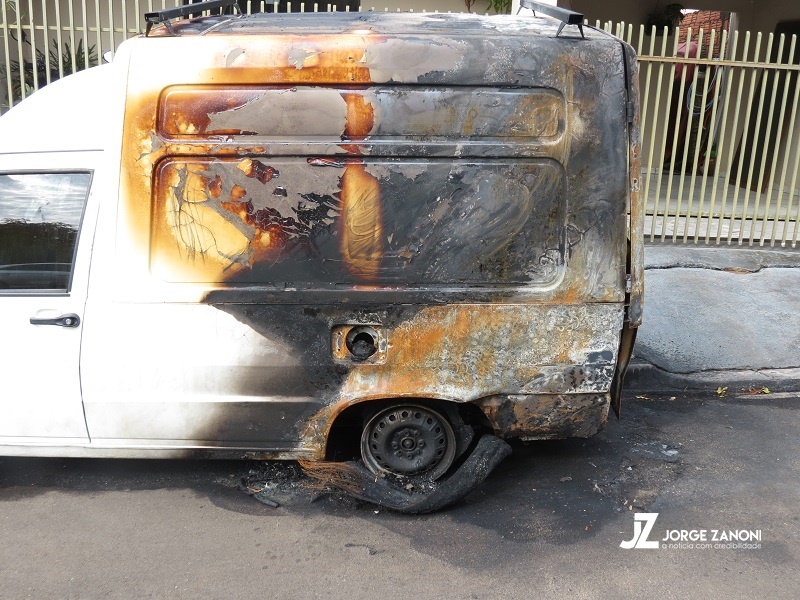 No Jardim Alvorada um veículo Corsa estava dentro da garagem e teve a parte da frente totalmente destruída. Já Bairro Emilio Zanata um Fiat Furgão Fiorino que estava na rua teve a parte traseira totalmente queimada pelo fogo. (Continua após a publicidade...)