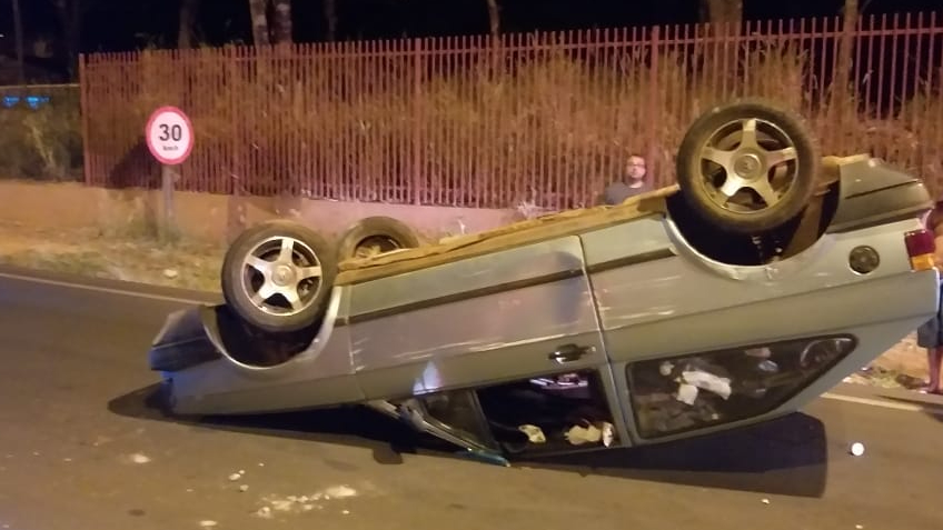 O acidente foi no começo da noite deste domingo (13). Por circunstâncias a apurar, o condutor perdeu o controle de direção do veículo, que capotou, parando na posição/sentido Lar dos Velhos/rotatória. (Continua após a publicidade...)