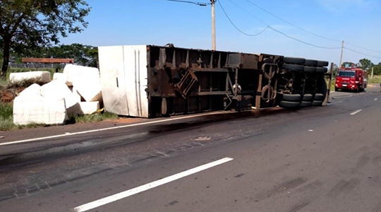 Novembro de 2019: caminhão capotou e motorista ficou gravemente ferido(Foto: Siga Mais)