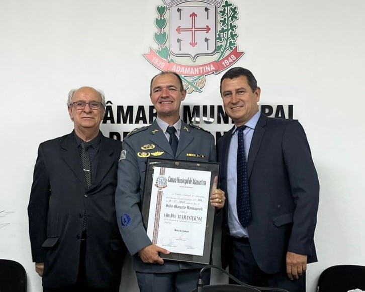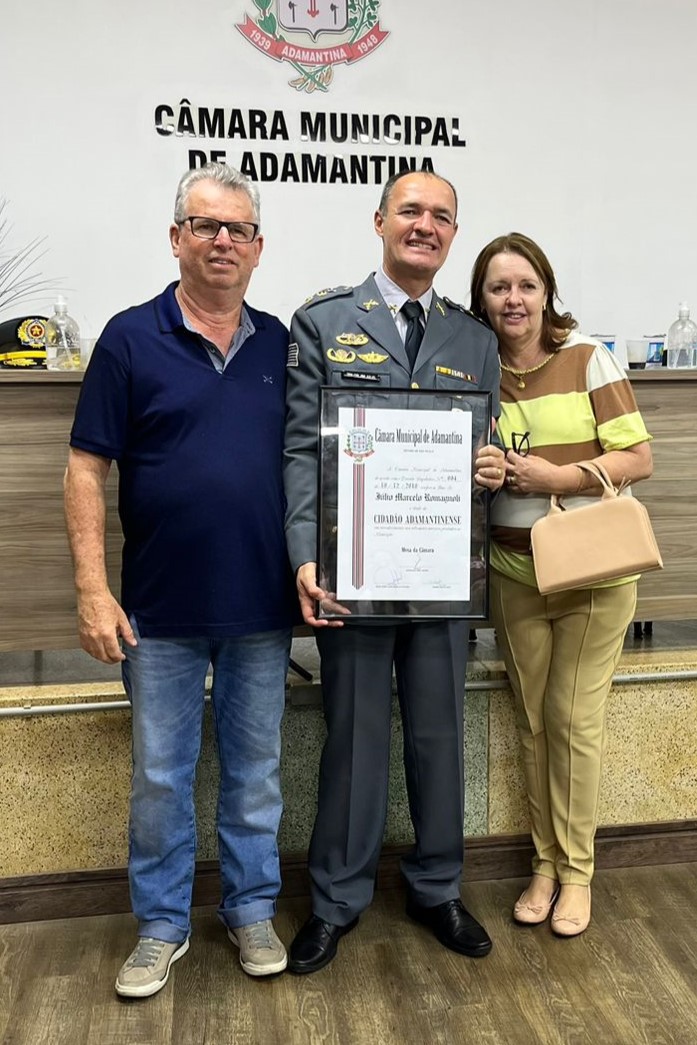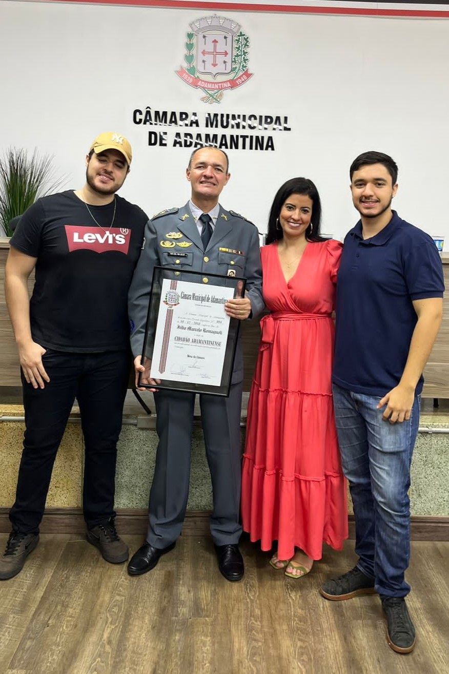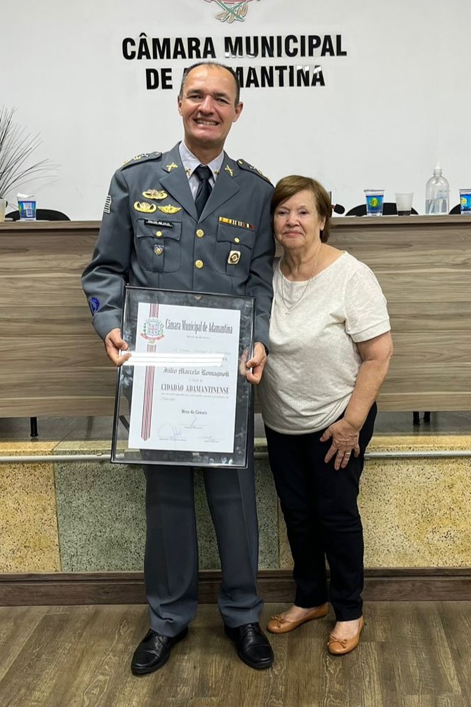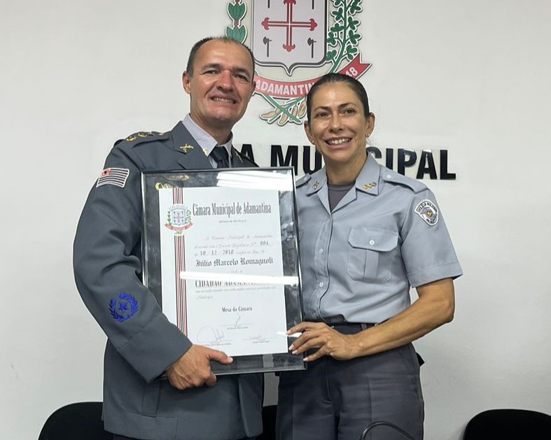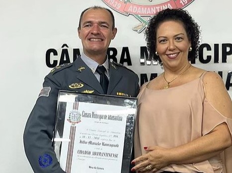 Uma sessão solene realizada na tarde desta terça-feira (7) na Câmara Municipal de Adamantina marcou a entrega oficial do título de Cidadão Adamantinense ao tenente-coronel Júlio Marcelo Romagnoli, comandante do 25º Batalhão da Polícia Militar do Interior (25º BPM/I), sediado em Dracena. O batalhão responde pelo policiamento militar em 22 cidades da região, na faixa entre Osvaldo Cruz a Panorama/Paulicéia.