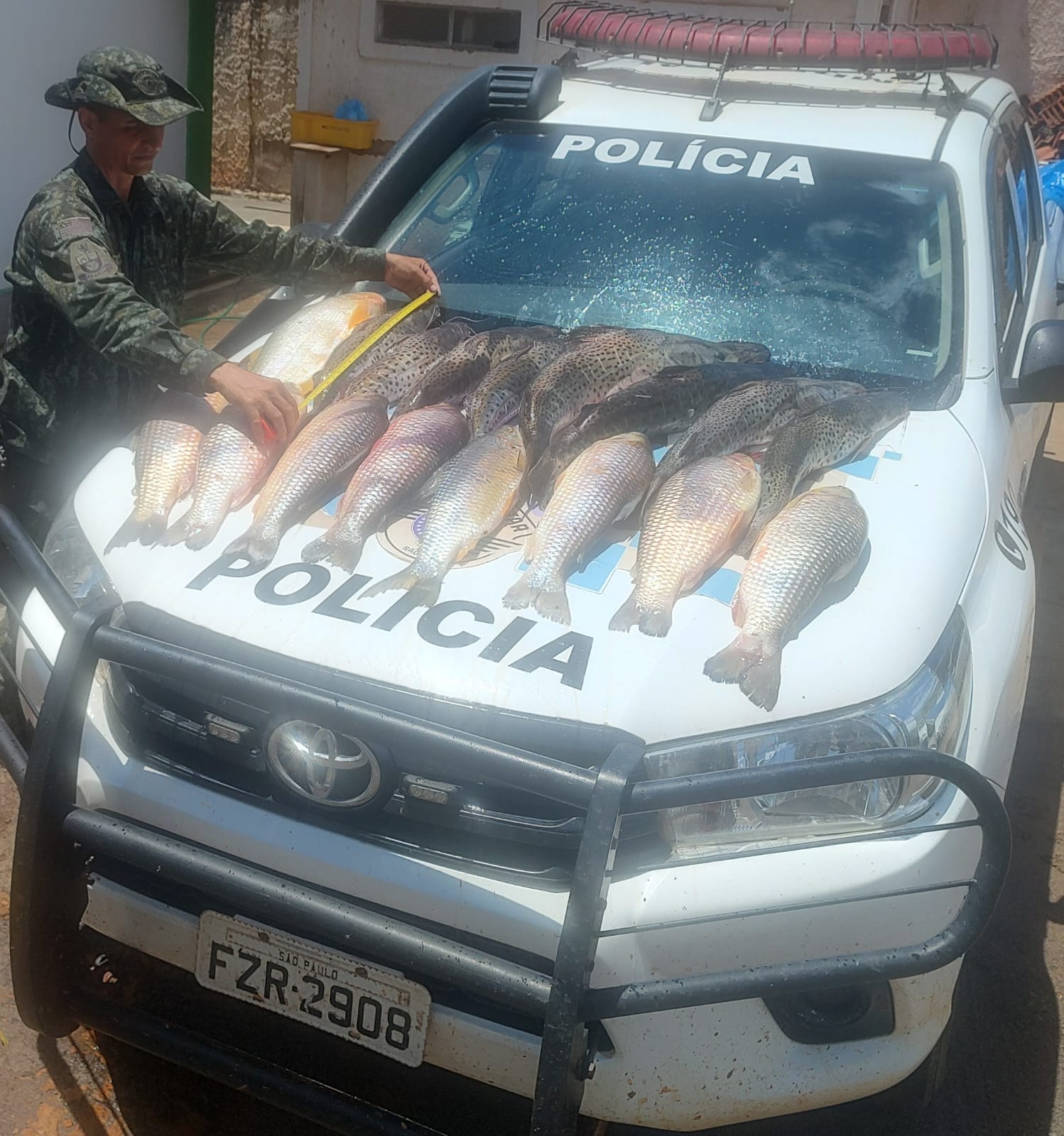 Além dos 72 quilos de pescados levados no porta-malas do veículo, os policiais também encontraram um tanque de combustível de embarcação, roupas e botinas molhadas.