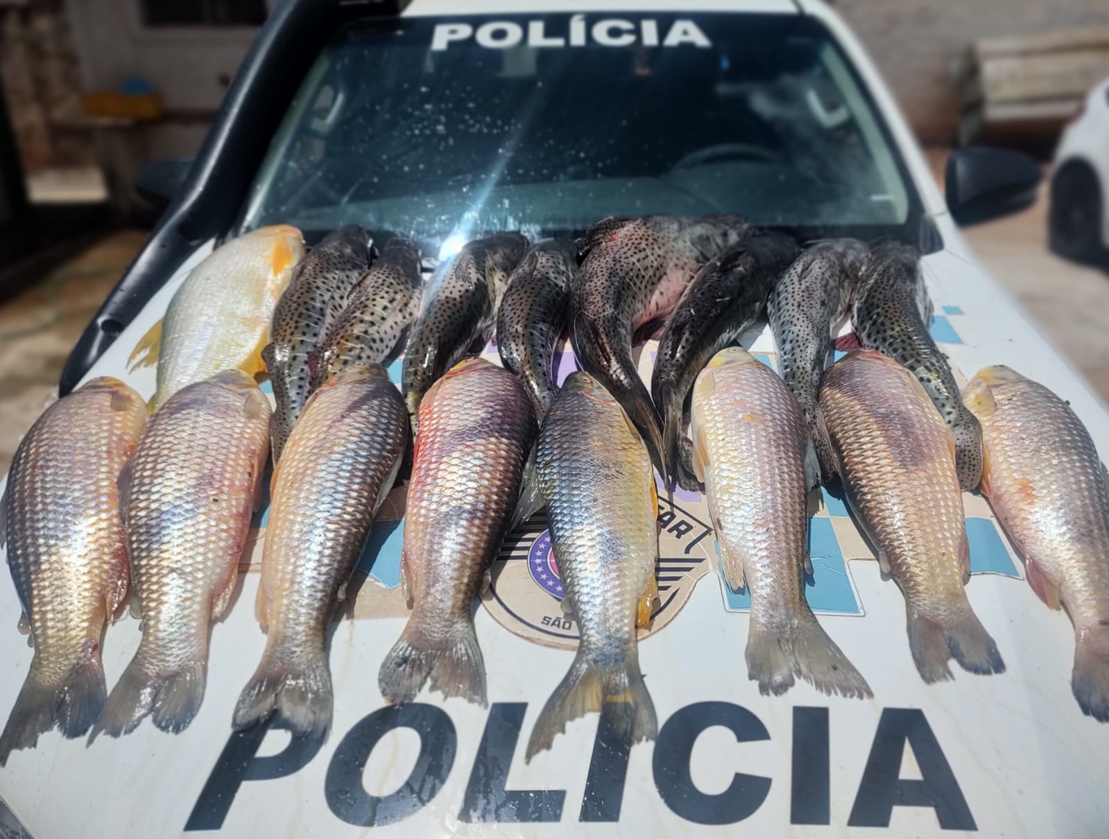 Neste sábado (14), durante patrulhamento pela Rodovia Paschoal Milton Lentini (vicinal do Salto Botelho) em Lucélia, uma equipe da Polícia Militar Ambiental efetuou acompanhamento do veículo Ford Belina que não obedeceu o sinal de parada e sinais sonoros e luminosos da viatura, e flagrou o transporte de 72 quilos de peixes das espécies Pintado, Dourado, Piapara e Piauçu, todos nativos da Bacia Hidrográfica do Rio Paraná, cuja captura está proibida no período da piracema.