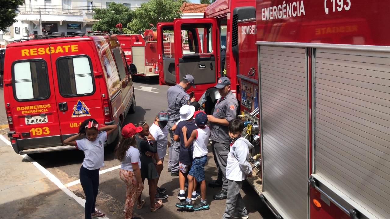 Estudantes visitam exposição de conscientização e comemorativa ao aniversário dos Bombeiros