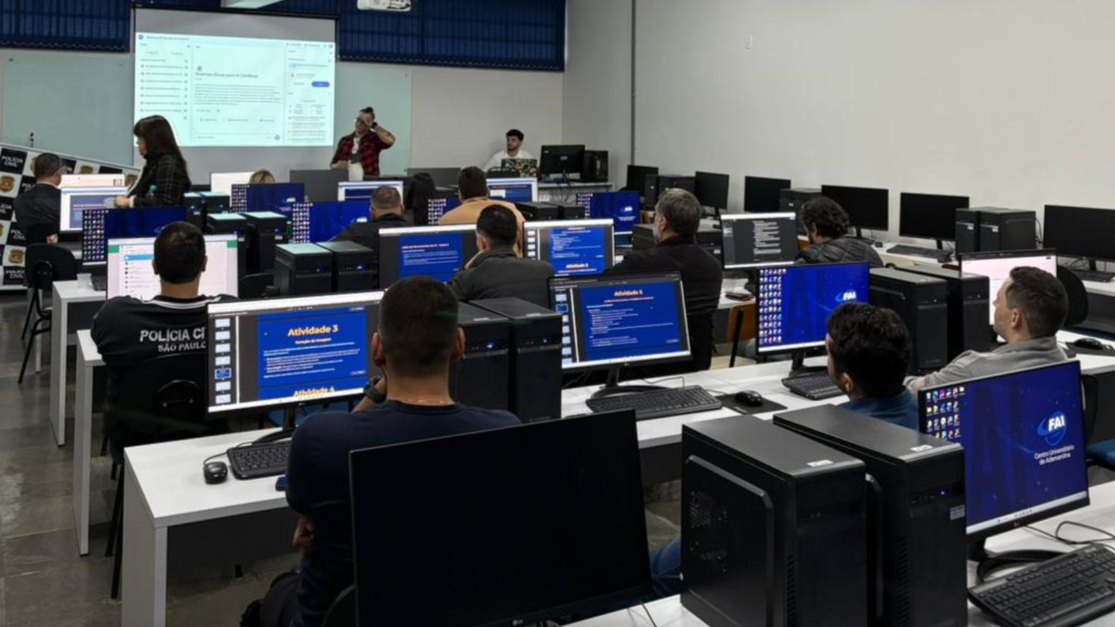 O Centro Universitário de Adamantina (FAI), por meio da Pró-reitoria de Extensão (PROEXT), promoveu na última sexta-feira, 30 de maio, a palestra “Inteligência Artificial para a Segurança Pública: Conceitos e aplicações” à Polícia Civil de Adamantina, ministrada no Laboratório de Informática, Sala 11 do Bloco II (Câmpus II), das 14h às 17h30.