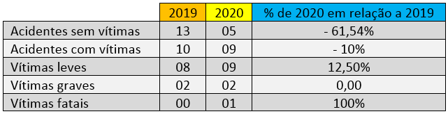Veja o quadro sobre acidentes de trânsito, divulgado em nota à imprensa pela PM Rodoviária: