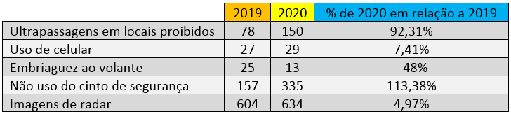 A PM Rodoviária avaliou, na nota, a redução no número de acidentes e o aumento no número de infrações, e identificou também o crescimento no número de veículos nas estradas da região, neste feriado de Finados, em relação aos feriados anteriores, neste período de pandemia. “Destaca-se nesse contexto a redução no número total de acidentes em relação ao mesmo período do ano passado”, diz a nota. “Ressalta-se que as infrações aumentaram dada quantidade de veículos na via neste feriado prolongado, aliado com a imprudência de alguns condutores que ainda insistem no cometimento de infrações que comprovadamente mais causam acidentes”, continua a corporação. “Podemos acrescentar por fim que o volume diário médio dos veículos nas rodovias tem aumentado consideravelmente em relação aos feriados deste período de Pandemia", completa. (Continua após a publicidade...)