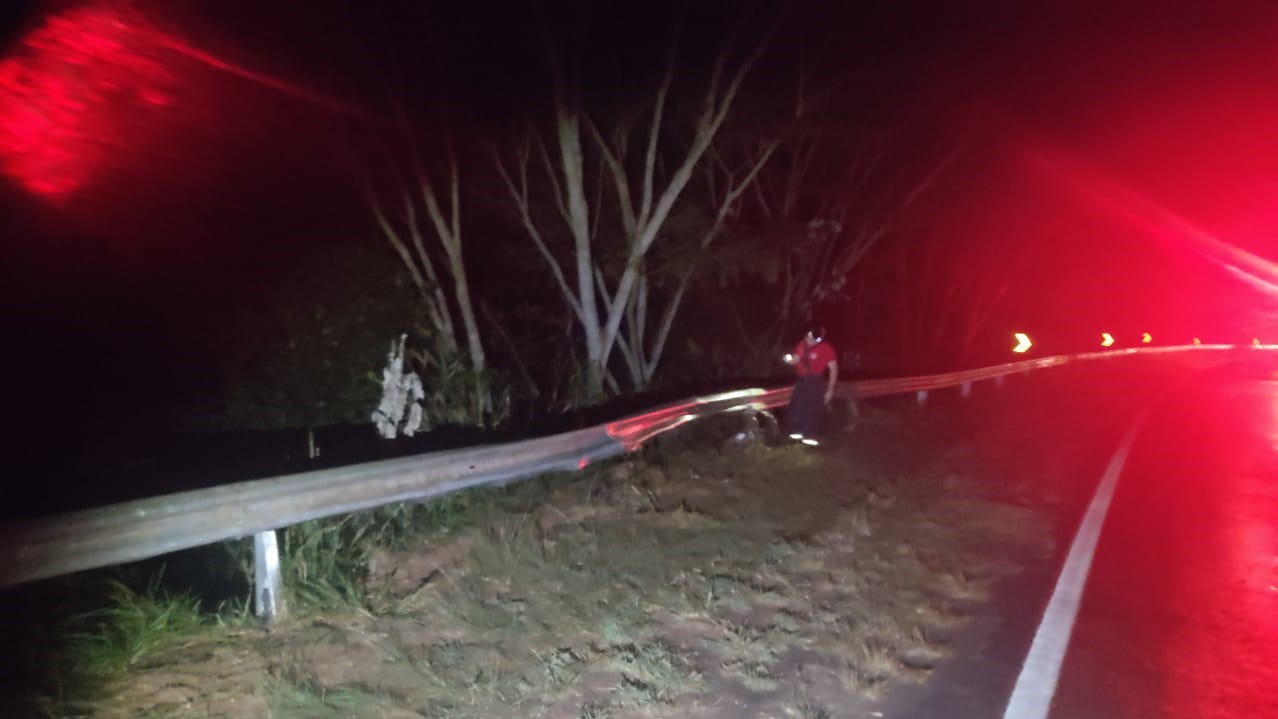 Local onde houve o choque em defensa metálica (Cedida/PM Rodoviária.