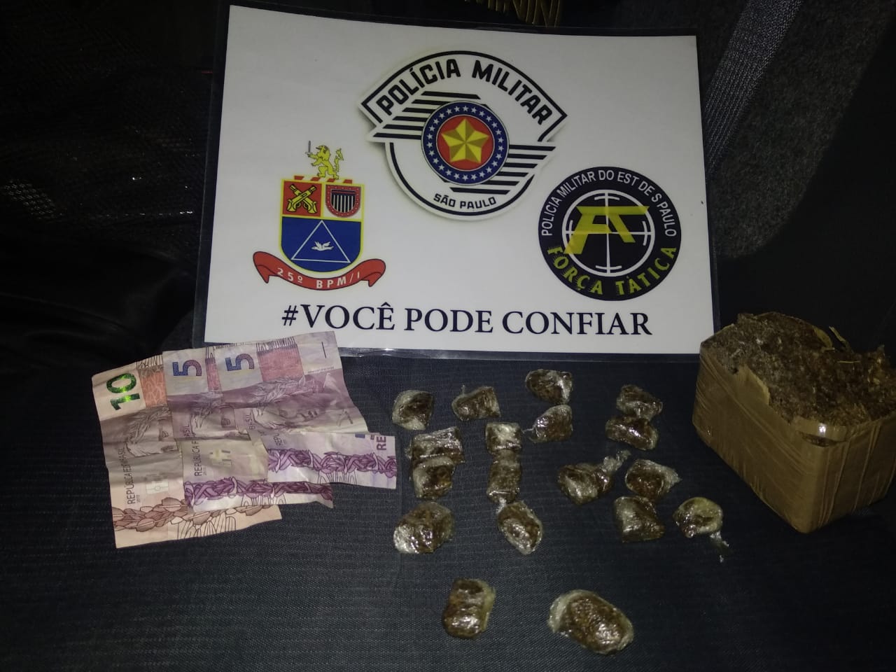 Segundo a PM, ação foi por volta das 22h, quando a equipe se deparou com o homem que, a notar a aproximação policial, dispensou algo. Ele foi abordado e na busca pessoal os policiais localizaram R$ 20. Ao verificar o que havia sido dispensado, foram encontradas três porções de maconha prontas para venda. (Continua após a publicidade...)