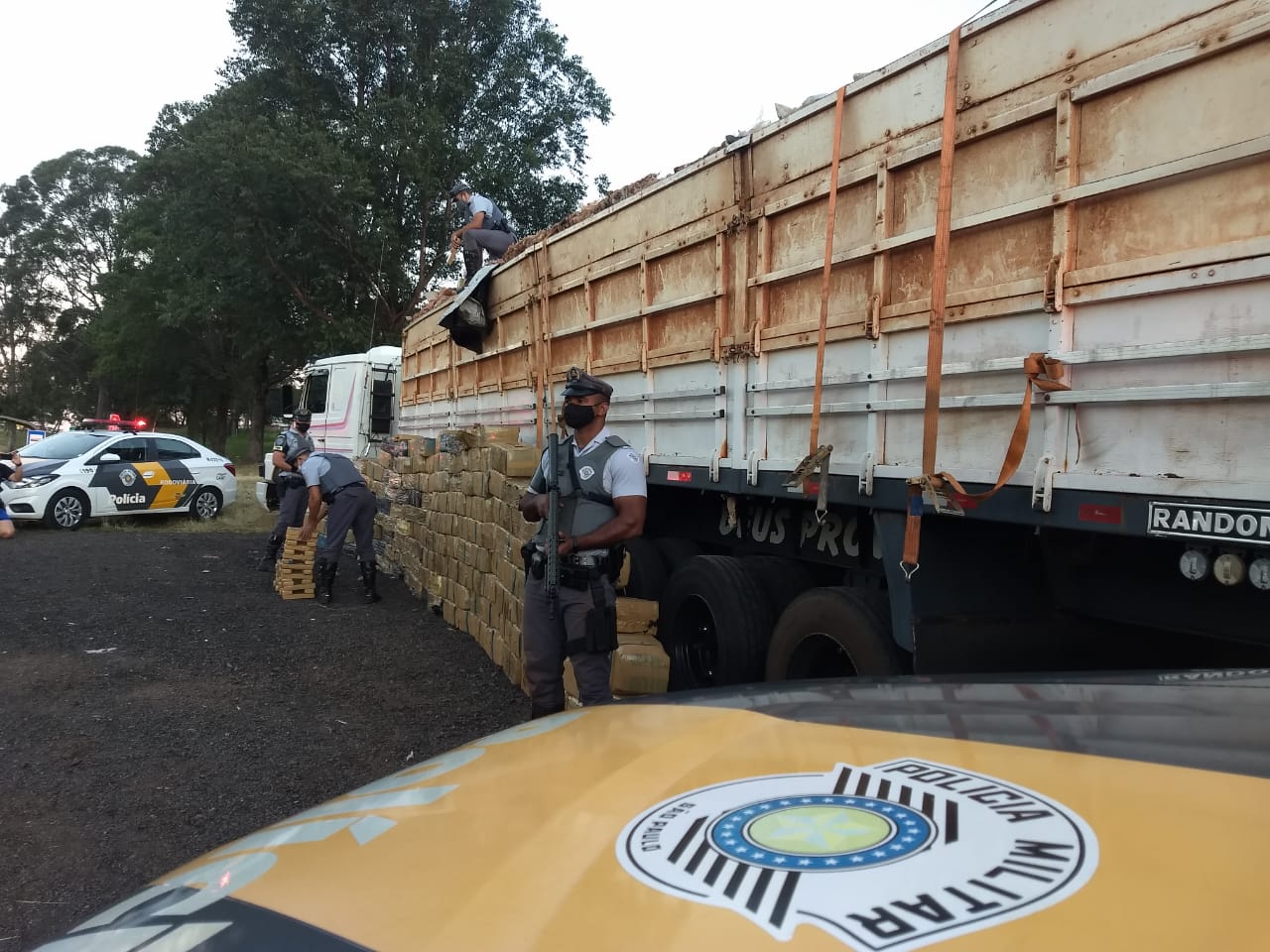 Homem é preso pela PM Rodoviária com carregamento de 2,7 toneladas de maconha em carreta