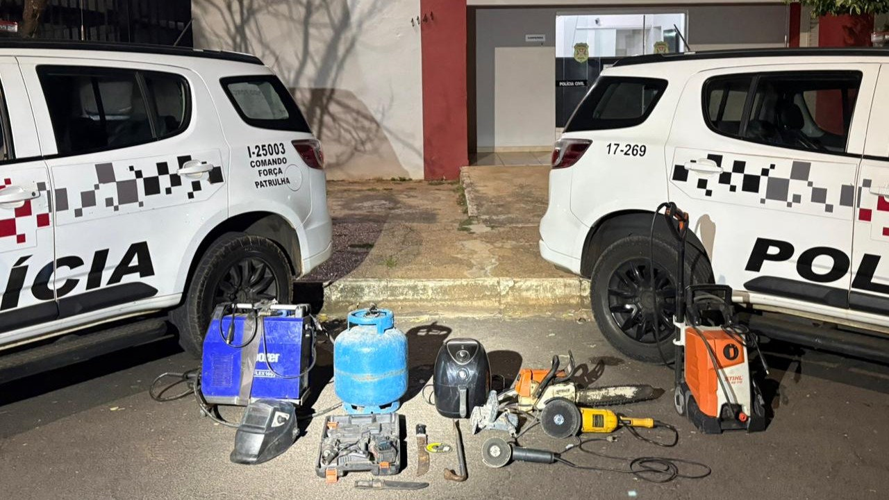 Diante da possível ligação do condutor com furtos na região, as diligências se estenderam até três endereços em Mariápolis, incluindo a residência dele e de outros dois indivíduos — um homem de 33 anos, apontado como possível comparsa, e seu pai, de 64 anos. Nos locais, foram encontrados diversos objetos de origem suspeita, como ferramentas e equipamentos possivelmente provenientes de furtos na zona rural.