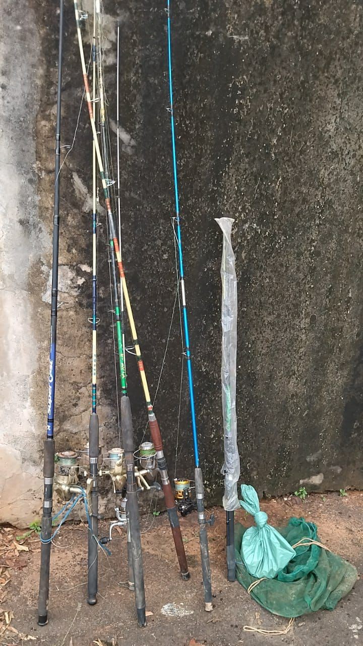 De acordo com a corporação, um indivíduo foi avistado às margens do rio e, ao perceber a presença policial, fugiu em meio à vegetação. Após diligência a pé, os agentes localizaram um pescador amador, de 62 anos, que confessou ser o proprietário de varas e anzóis armados em galhos às margens do rio. No local, também foram encontrados um saco com sangue e escamas de peixe e uma faca. O pescado não foi localizado.