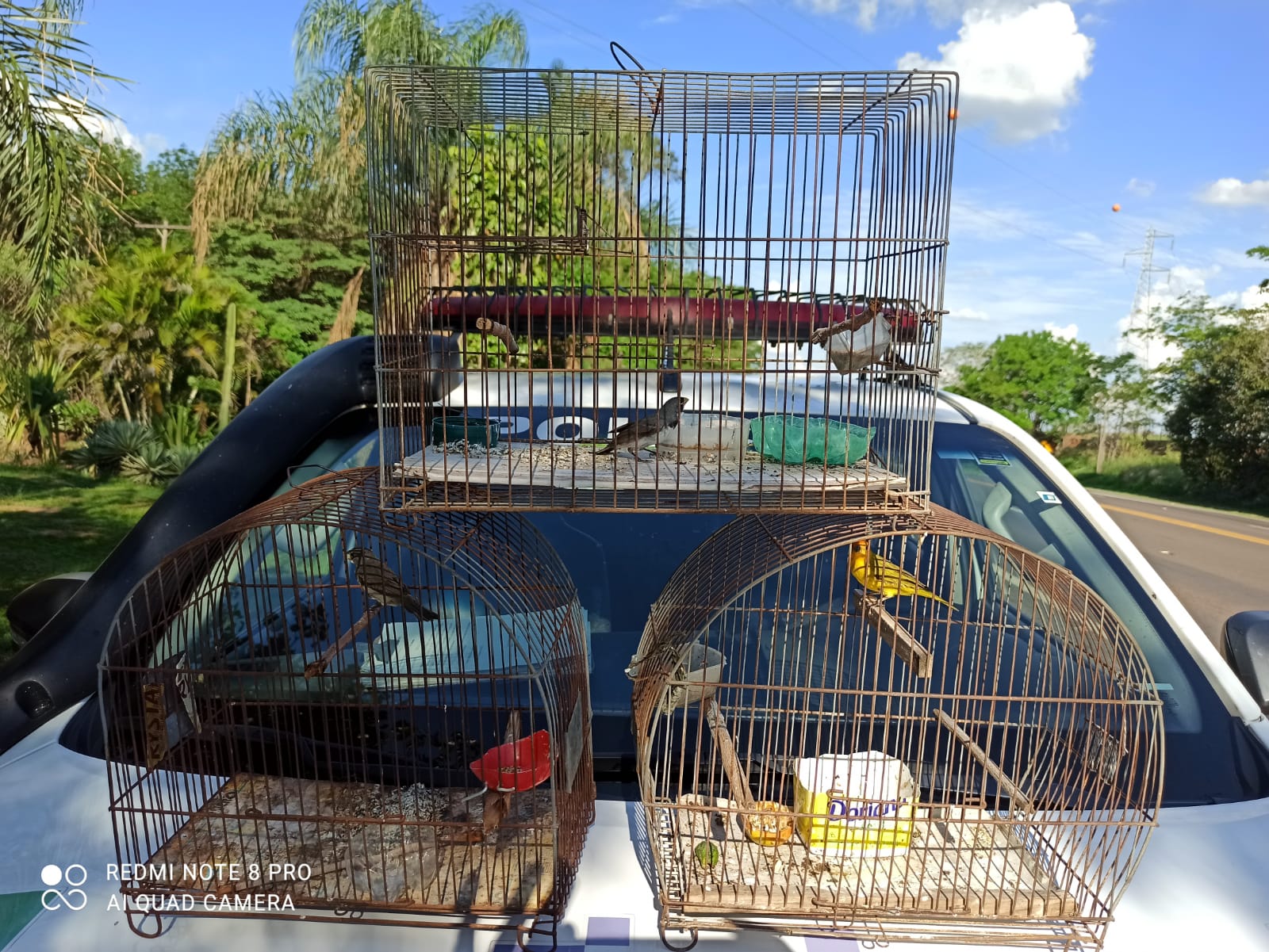 De acordo com a PM Ambiental após receber informações sobre o caso uma equipe foi até o local informado onde constatou três aves da fauna silvestre em cativeiro, sendo um canário-da-terra -verdadeiro e dois cordeirinhos.