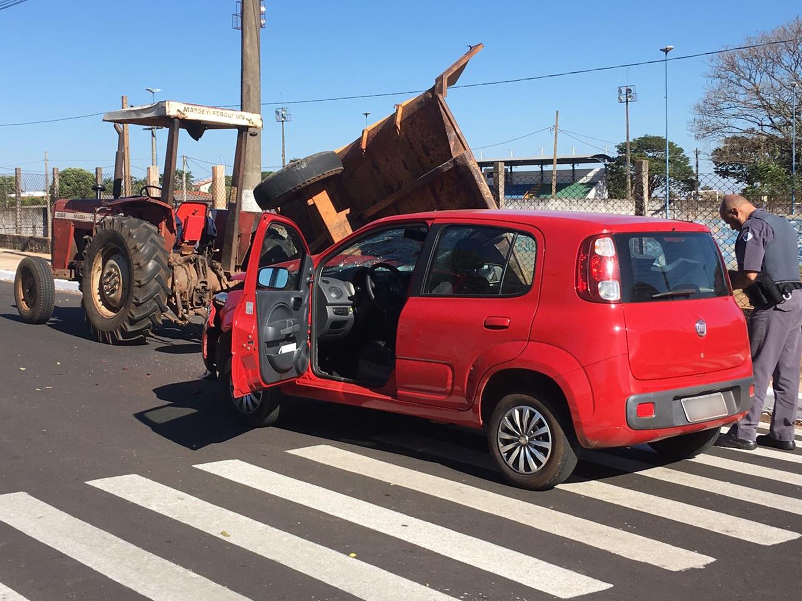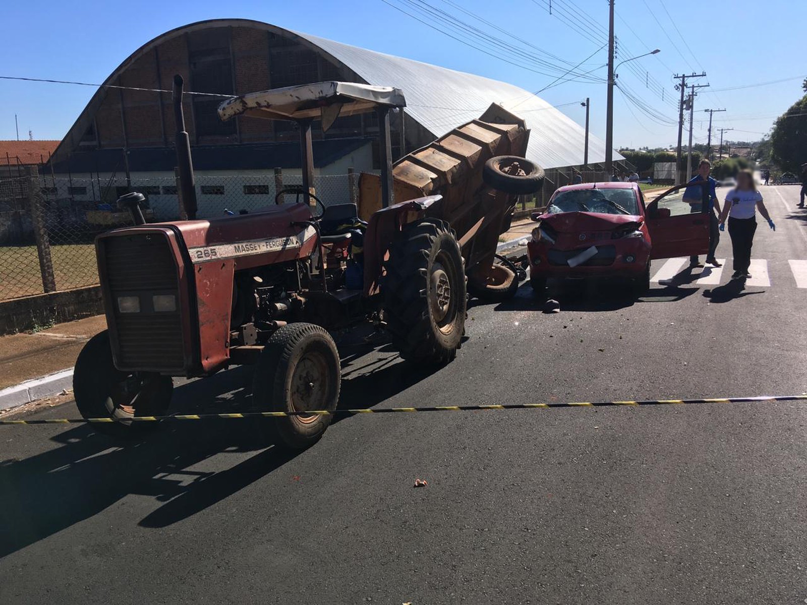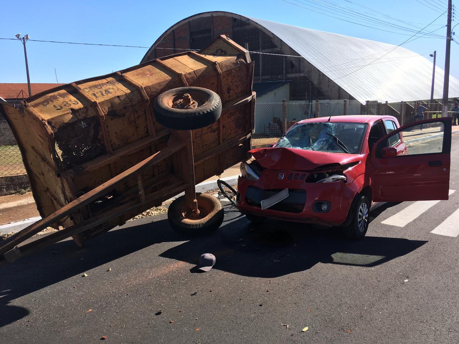 Idoso estava na bicicleta, atingida por carro. Ele foi arremessado sobre a carreta de um trator.