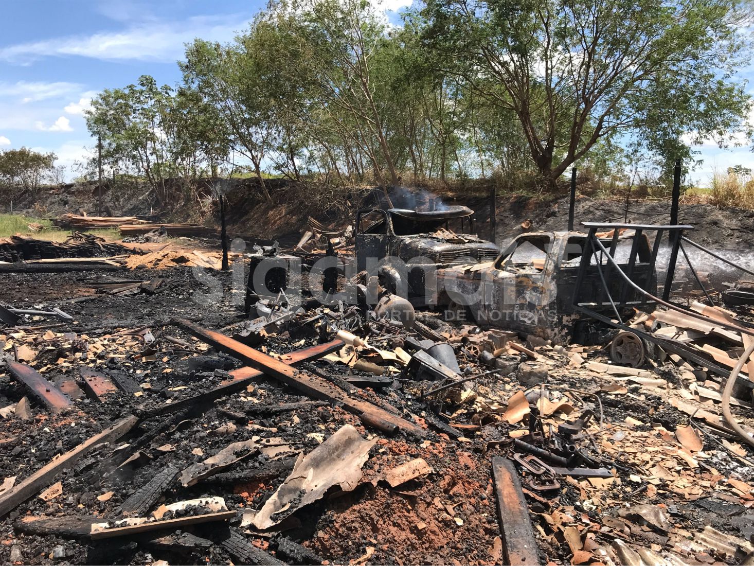 Um incêndio nesta segunda-feira (15) destruiu parte do estoque de madeiras, dois veículos (um caminhão e uma caminhonete) e equipamentos da Madeireira Lot, localizada na Estrada Vicinal José Bocardi, logo após o aeroporto, em Adamantina.
