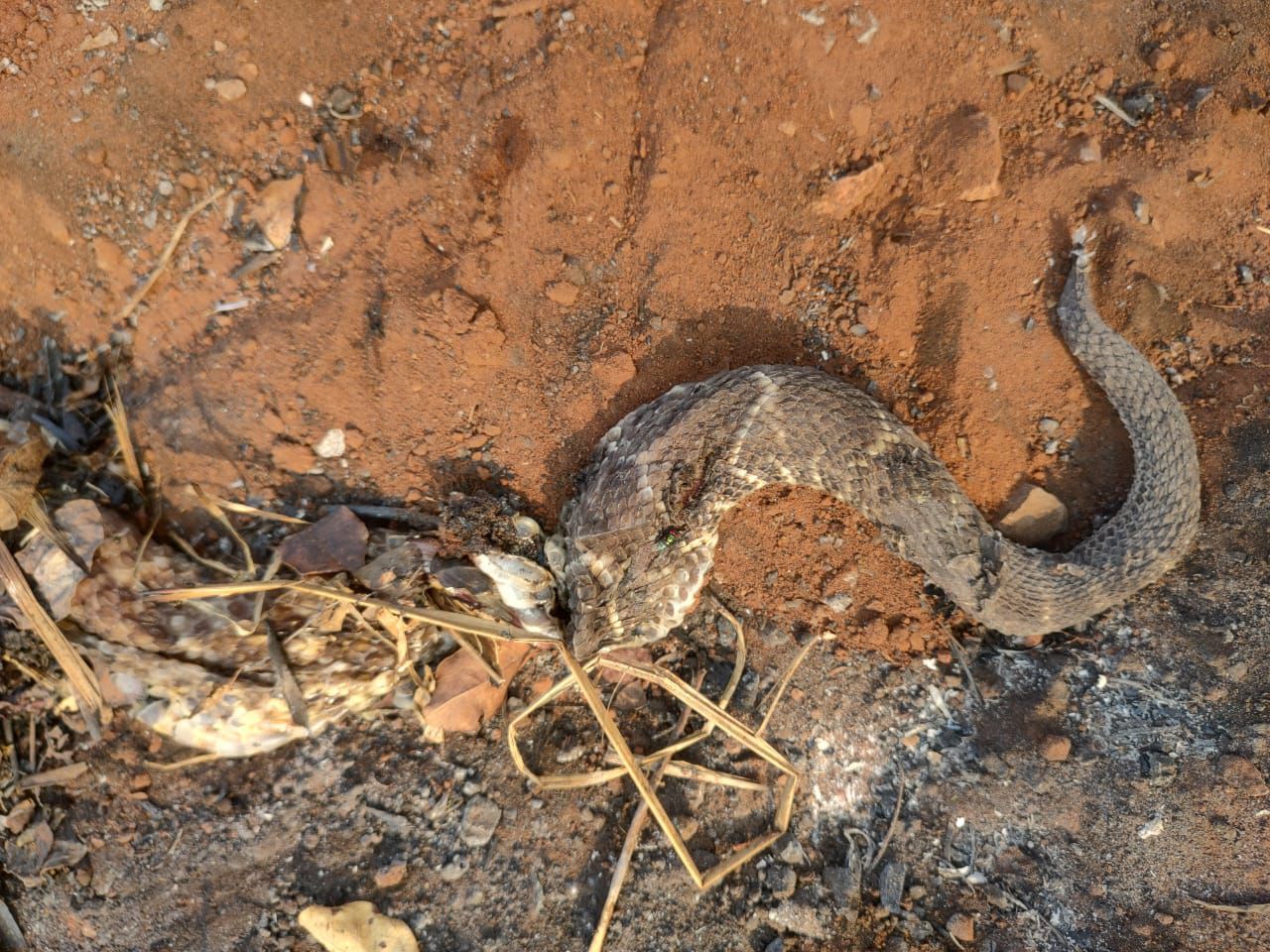 Imagens mostram répteis mortos em meio ao cenário de cinzas deixado pelo incêndio.