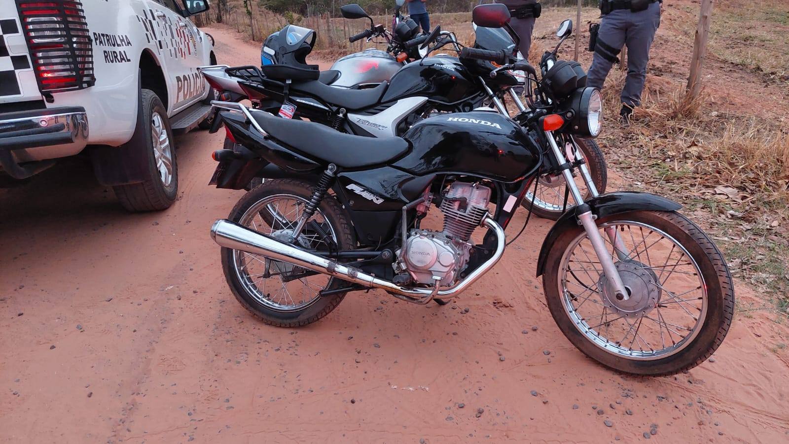 Acionada via Copom, a equipe policial mobilizada obteve acesso a imagens de câmeras de monitoramento de um comércio próximo e iniciou diligências, conseguindo localizar as motos em uma área rural, onde estavam abandonadas em meio à vegetação.