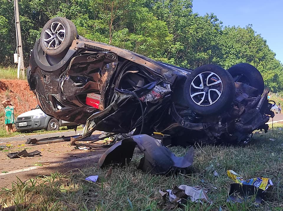 No local, do lado da estrada, existem diversas árvores de médio e grande porte, onde o veículo acabou parando, após capotar. (Continua após a publicidade...)