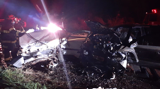 Os veículos transitavam em sentidos opostos e por razões a serem esclarecidas colidiram frontalmente.