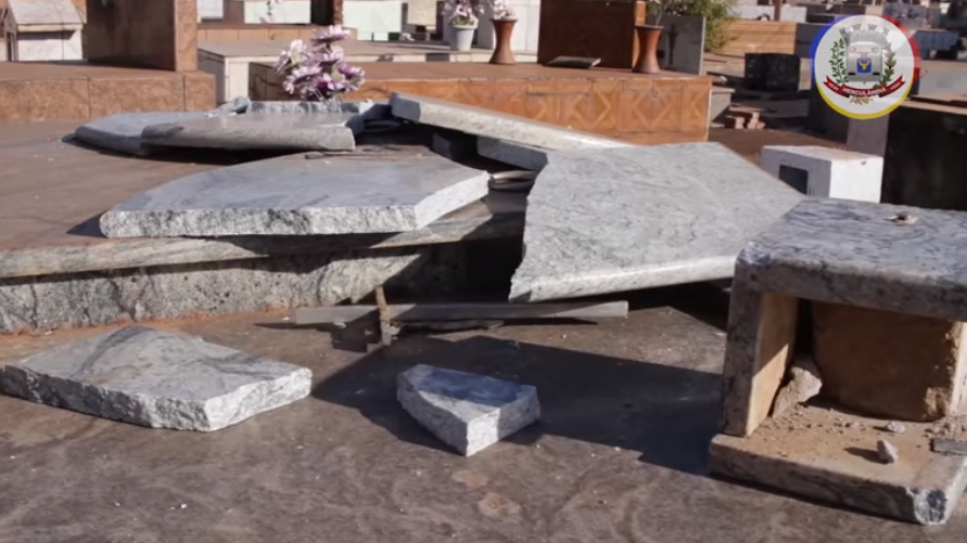 Caso de vandalismo em cemitério é investigado pela polícia.