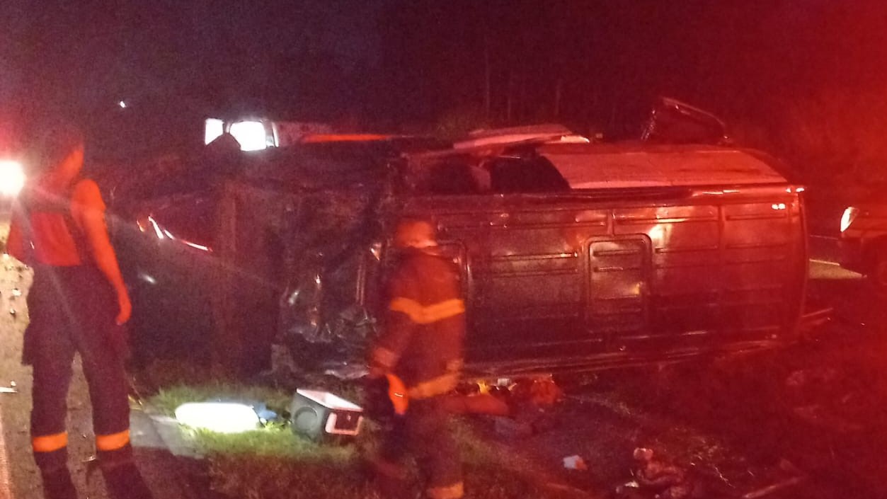 Após serem acionadas, as equipes do policiamento rodoviário foram ao local e constataram o capotamento envolvendo um micro-ônibus Renault/Master com placas de Guarapuava (PR), com 10 ocupantes, incluindo o condutor.