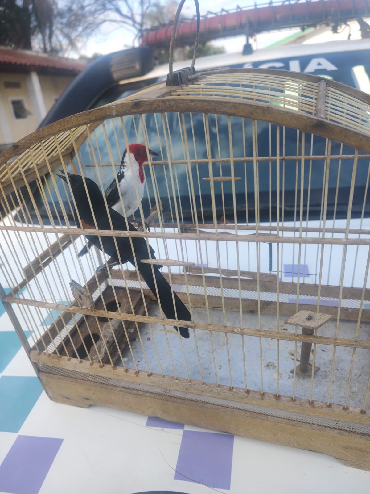 No quintal da casa, segundo a PM Ambiental, foi constatada a manutenção em cativeiro de quatro aves silvestres acondicionadas em gaiola e viveiro sem autorização, sendo um papagaio verdadeiro, um pássaro preto, um galo de campina e um inhapim.