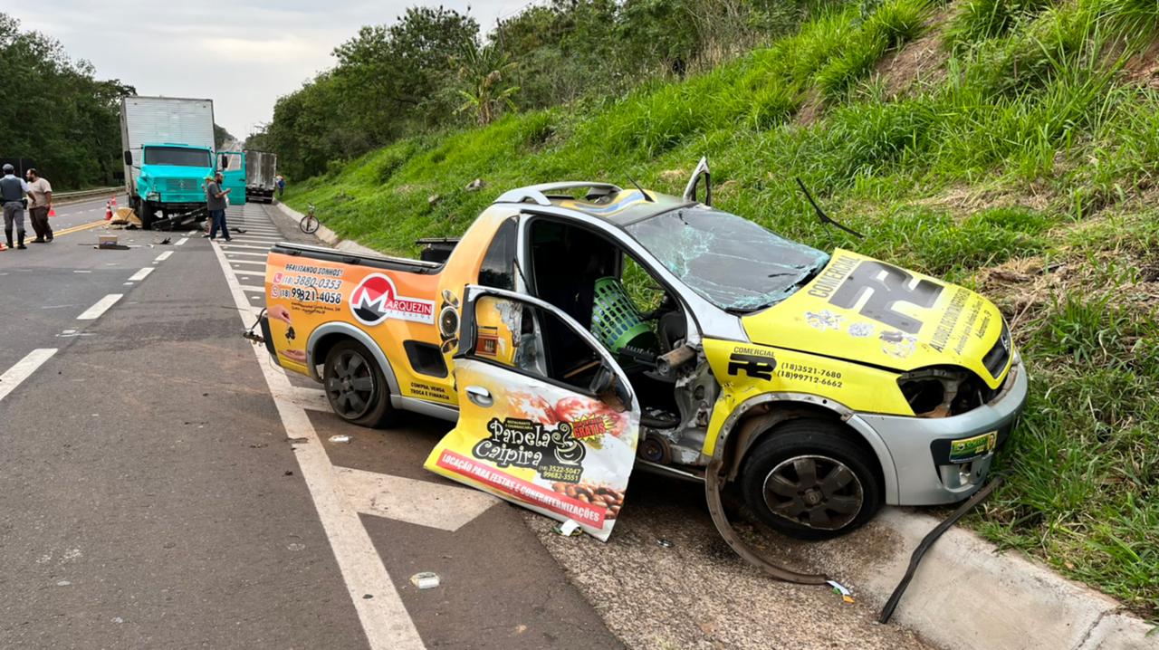 Acidente envolveu carro e caminhão na SP-294, em Lucélia.