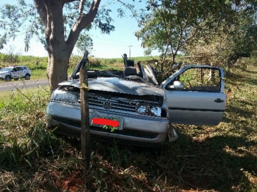 Motorista perde controle de direção e carro com três pessoas bate em árvore em rodovia da região