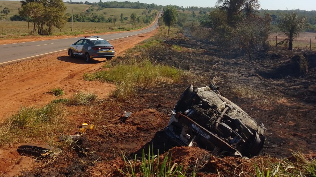 Mulher de 31 anos morre após carro capotar e pegar fogo em rodovia da região