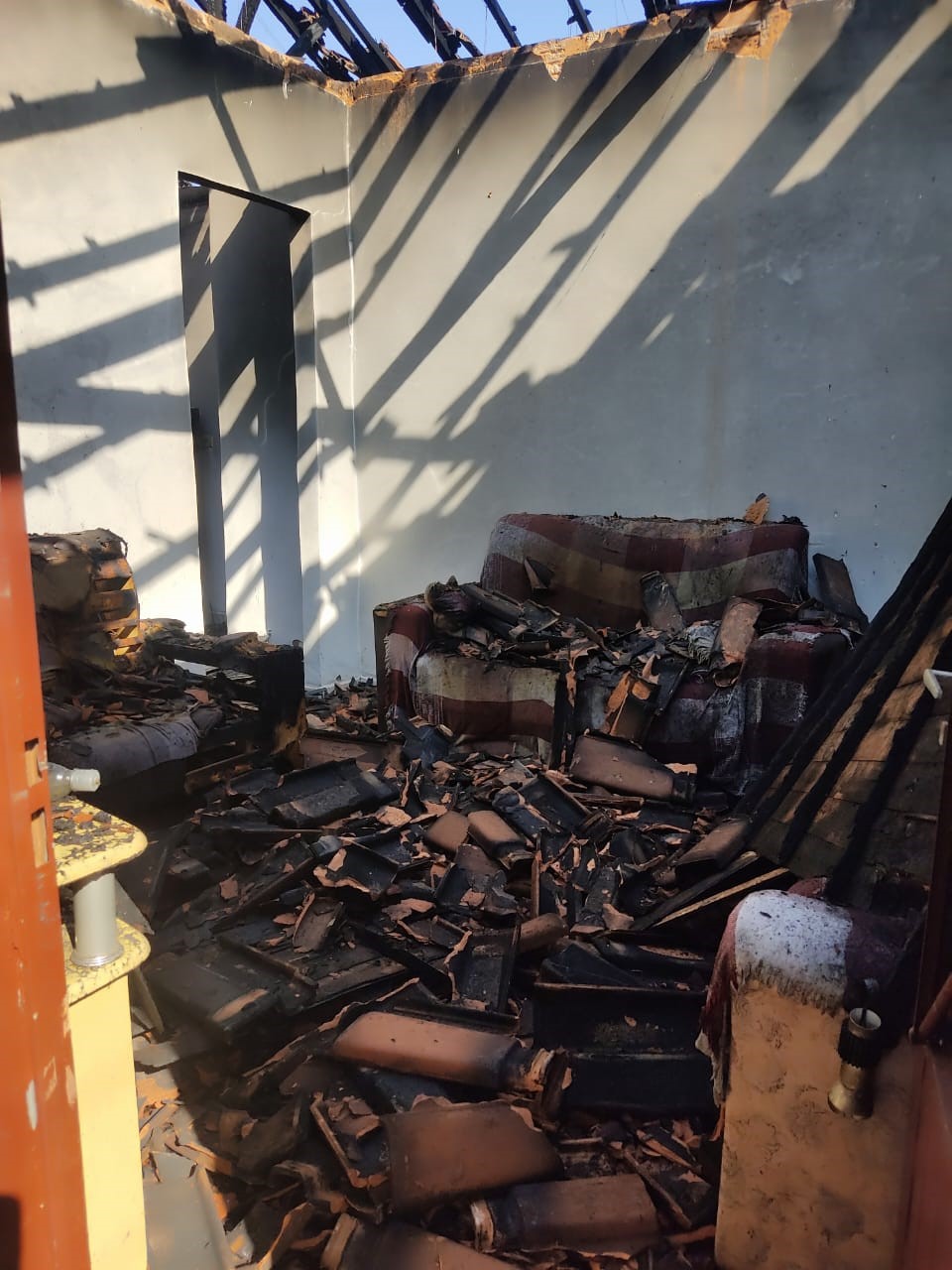 Segundo apurou a PM teria havido uma discussão onde a mulher ameaçou o pai de morte, utilizando-se de uma faca, e colocou fogo em um colchão, cujas chamas evoluíram para todo o imóvel.