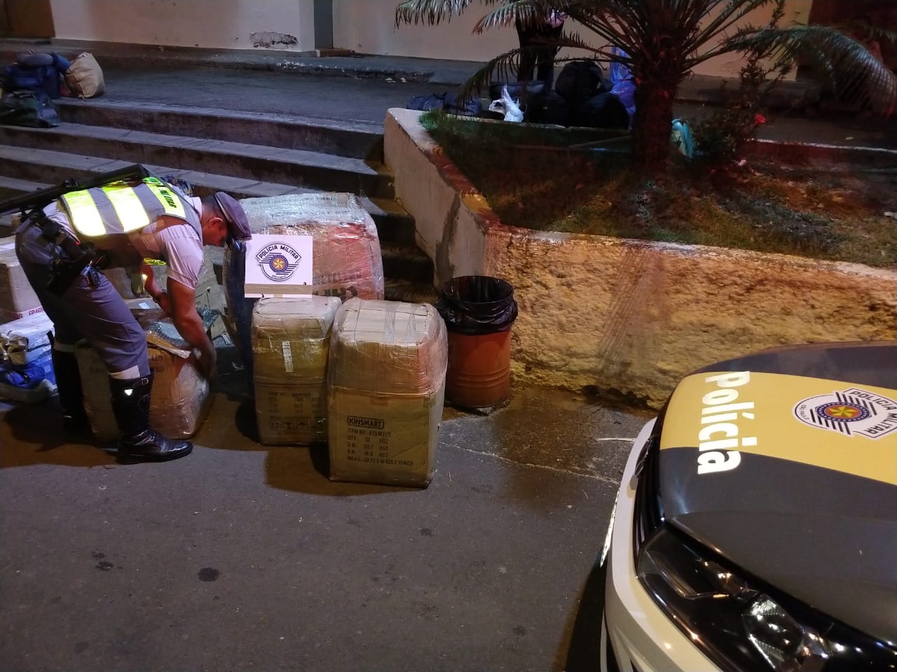 Em ato contínuo, durante vistoria no bagageiro externo, os policiais localizaram diversas mercadorias oriundas do Paraguai, desprovidas de documentação fiscal, entre elas vários frascos de perfumes, cadeados, 420 maços de cigarros e vários suplementos e vitaminas.