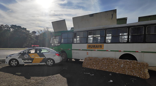 Ônibus rural é flagrado com 860 tijolos de maconha no teto