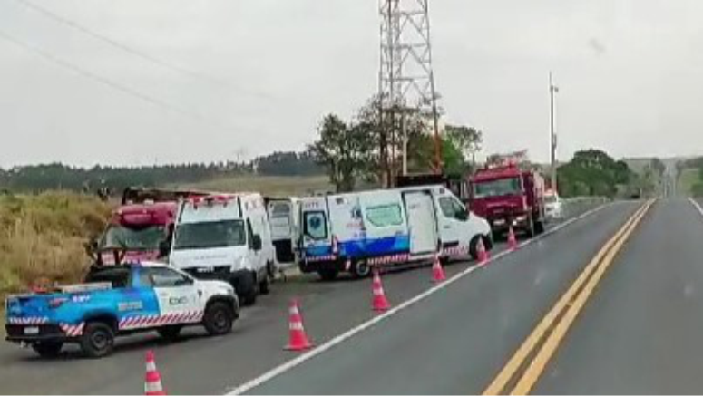 O atendimento à ocorrência mobiliza as equipes dos bombeiros, com cinco viaturas no loca, e ainda da concessionária, da Polícia Militar Rodoviária, do policiamento territorial da PM e ambulâncias municipais.