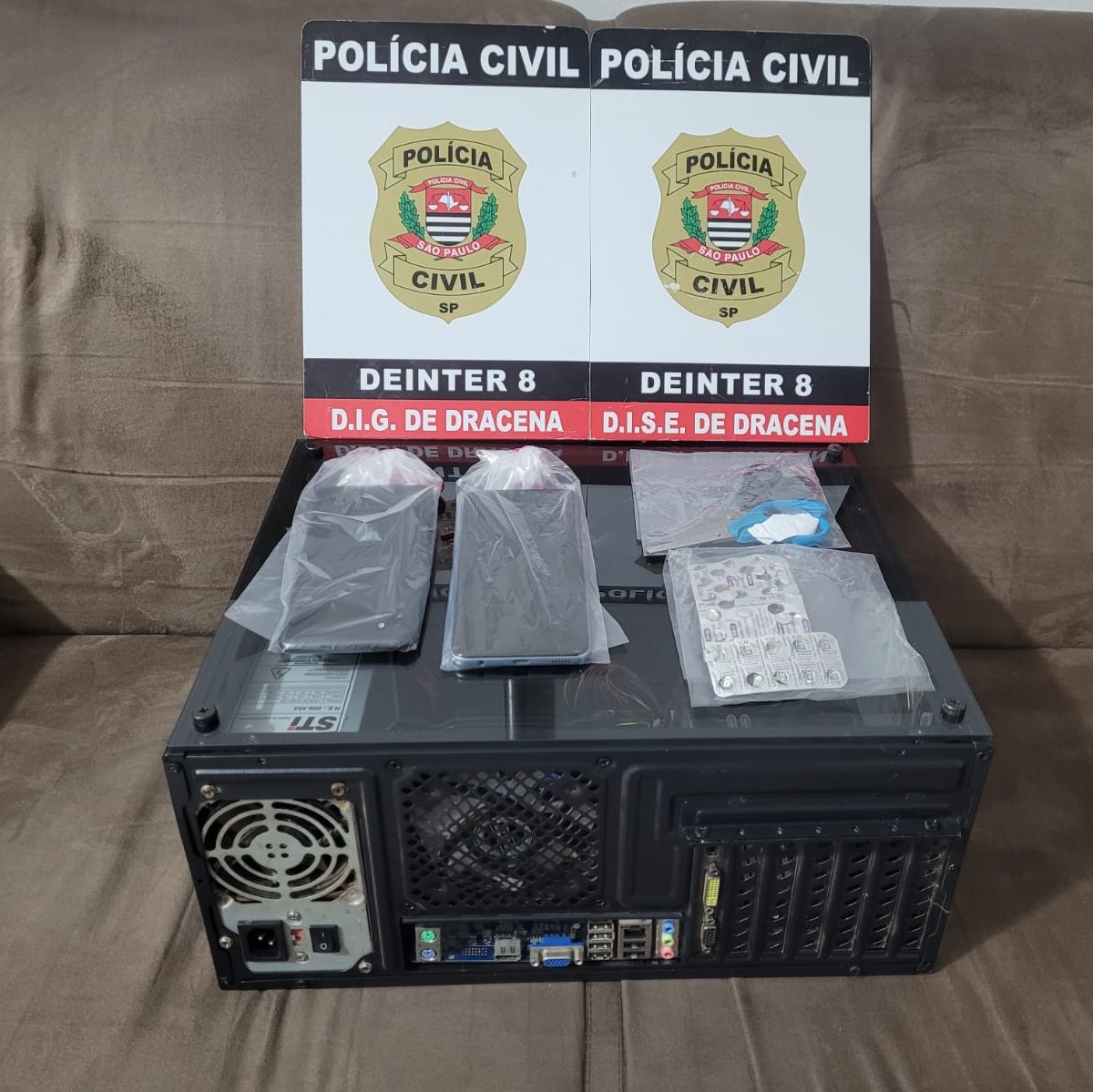 No município de Dracena, foram cumpridos dois mandados de busca e apreensão na residência de adolescentes, com o acompanhamento de seus responsáveis, sendo localizados e apreendidos celulares e computador.
