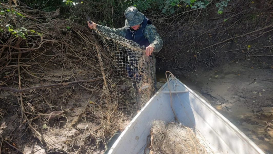 Segundo a PM Ambiental foram recolhidas cinco redes de pesca de nylon de 10 metros de comprimento por 1,50 metros de altura e malhas 160 milímetros; uma rede de nylon com 10 metros de comprimento por 1,20 metros de altura e malhas 70 milímetros; além de 35 anzóis de galho, que estavam armados irregularmente no ambiente aquático.