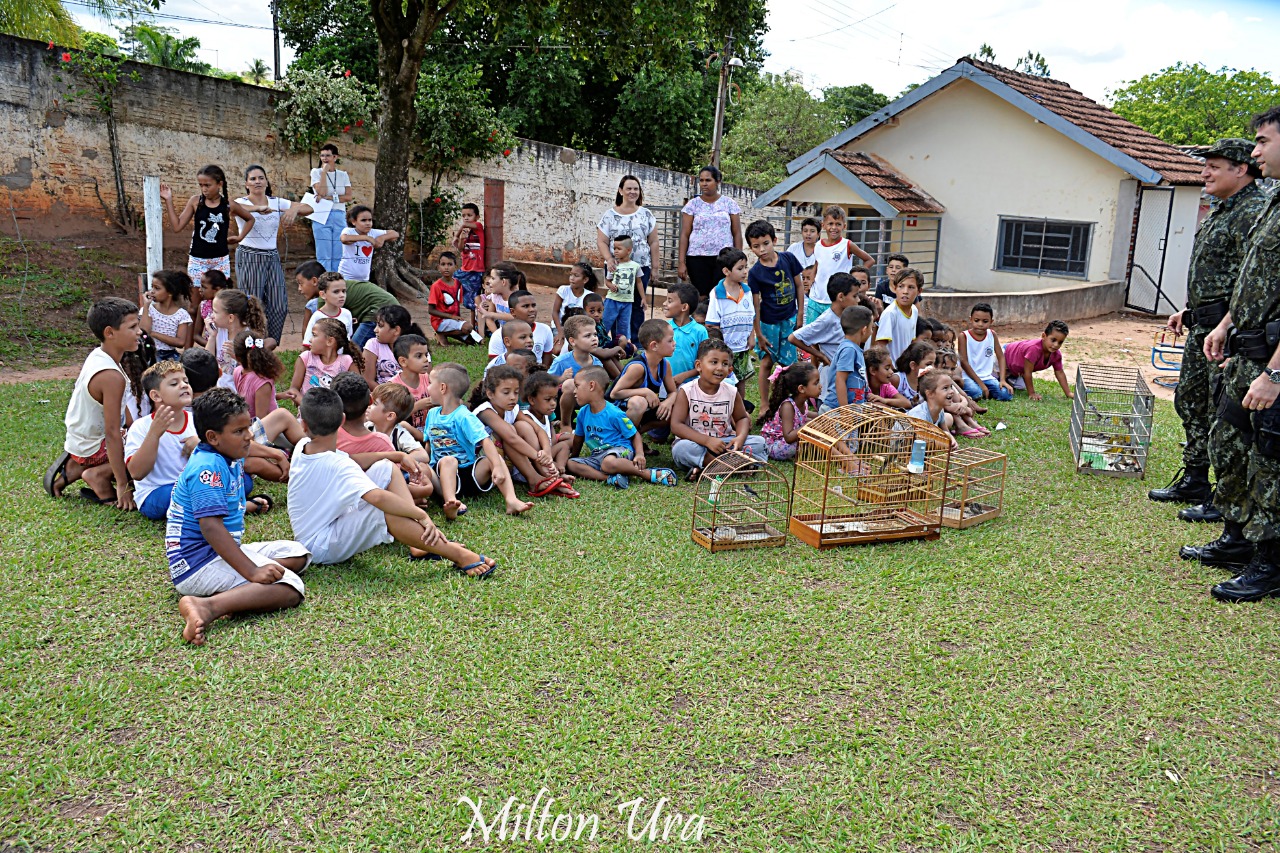 Trata-se de uma ação de educação ambiental com mais de 150 crianças, que tem o enfoque de demonstrar a necessidade de preservar o meio ambiente e combater a criação clandestina e o tráfico de animais silvestres.