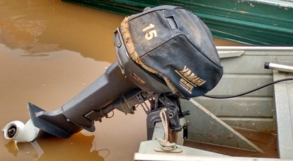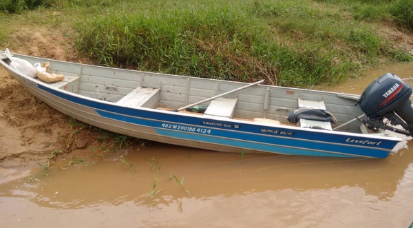 Barco, motor de popa e tarrafa foram apreendidos pela Polícia Militar Ambiental.