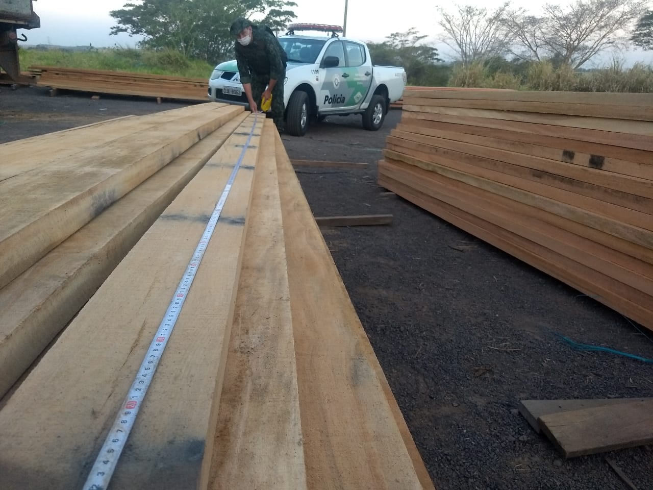 PM Ambiental flagra transporte e depósito irregular de madeira e aplica mais de R$ 27 mil em multa
