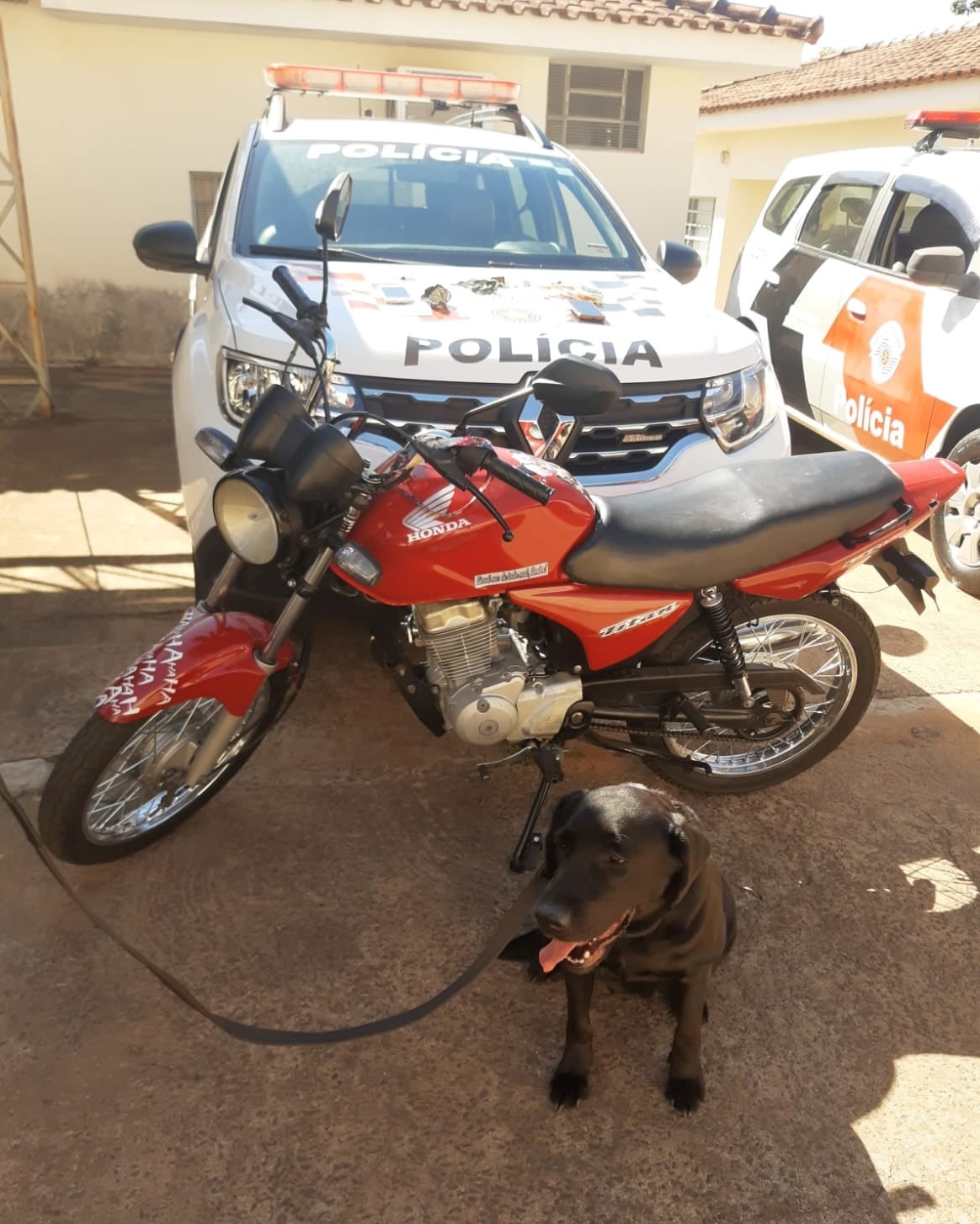 Indagada se havia mais alguma droga em sua residência, a mulher, objeto da denúncia, disse que somente um tijolo de maconha para seu uso. Com essa informação, a equipe do policiamento solicitou apoio do Canil da PM, com a cadela Emy, e foi até o endereço da mulher. Durante a revista ao imóvel foi localizado um tijolo fracionado de maconha.