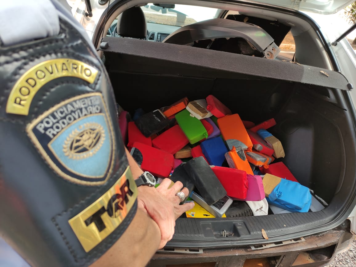Durante a fiscalização ao interior do automóvel, os policiais encontraram um fundo falso, entre a longarina e o para-choque traseiro, onde estavam escondidos 75 tabletes de cocaína, que totalizaram 79,1 kg da droga. O entorpecente tinha origem em Dourados e seguia para Belo Horizonte (MG).