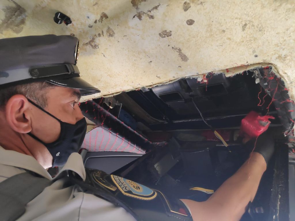 Fundo falso foi descoberto no teto da cabine (Cedida/PM Rodoviária).