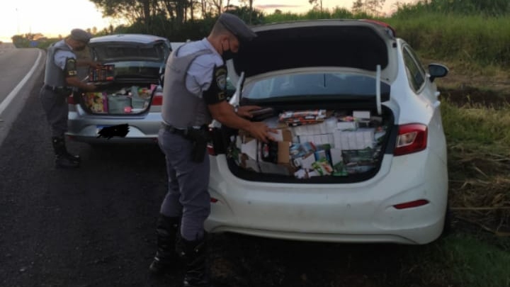 Carros com placas de Belo Horizonte (MG) foram abordados na SP-294 com mercadorias do Paraguai.