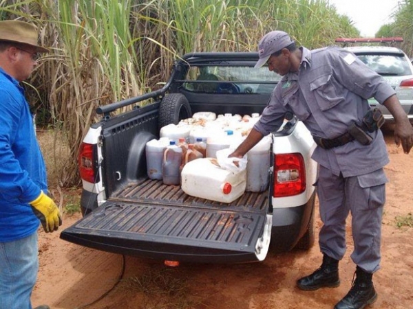 PolÃcia Ambiental apreende galões com 350 litros de produtos quÃmicos em canavial na Lagoa Seca