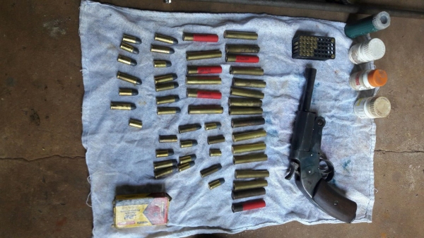 Os policiais tiveram autorização para a entrada no interior da residência, onde foi localizado o restante dos materiais, sendo uma segunda espingarda, marca CBC, calibre .36, um revólver de fabricação artesanal calibre .38, uma espingarda de pressão, além de espoletas, bolinhas de chumbo, pólvora, e materiais de caça e pesca, como lança de ferro, laços, cordas, redes e tarrafas. Os policiais encontraram também 1,7 kg de pescados (traíra e cascudo).