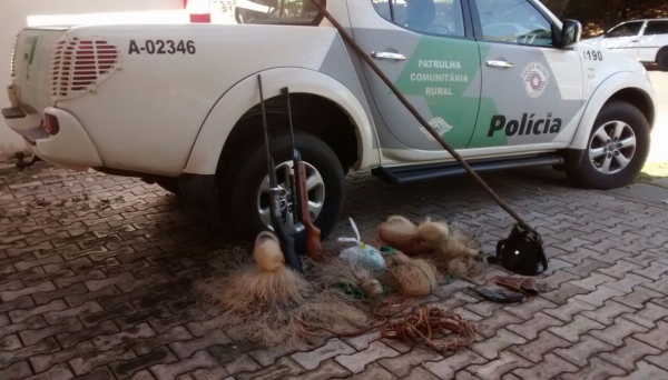 Polícia Ambiental prende homem com armas, munições e material de caça e pesca no Salto Botelho