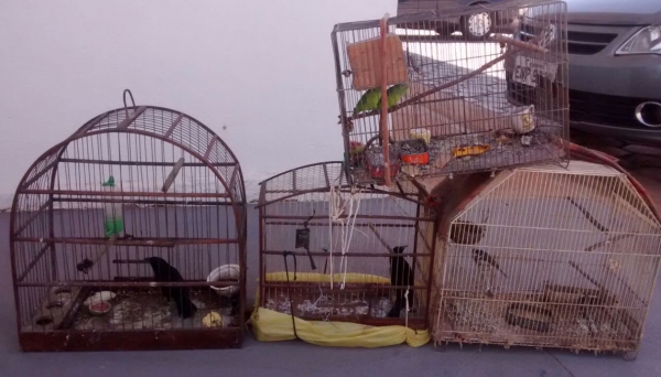 Na residência os policias ambientais localizaram sete pássaros silvestres, sendo dois “Pássaro-Preto”, dois “Tuim”, dois “Papagaios Verdadeiros” e um “Coleirinho Papa Capim”. Os pássaros silvestres estavam sem anilhas de identificação em gaiolas individuais e coletivas espalhadas pela varanda e quartos, mantidos em cativeiro sem licença do órgão ambiental competente.